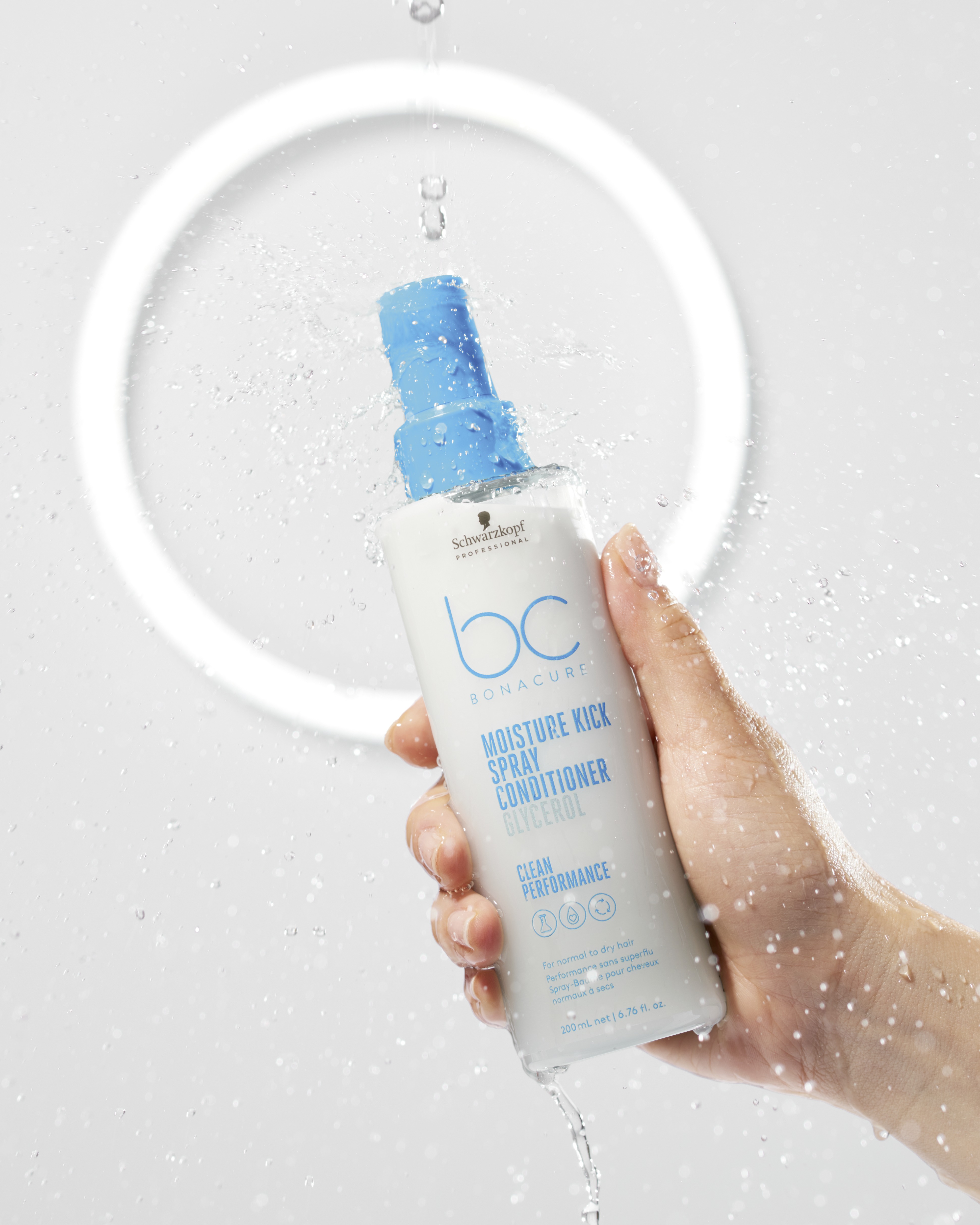 Los productos profesionales para el cabello de Bonacure Moisture Kick, cuando se combinan con la Queratina Vegana y la Tecnología Cell Equalizer, suavizan la superficie capilar y proporcionan manejabilidad, elasticidad y brillo al cabello. Sus fórmulas ayudan a mantener un nivel de hidratación óptimo en el cabello hasta 48h.